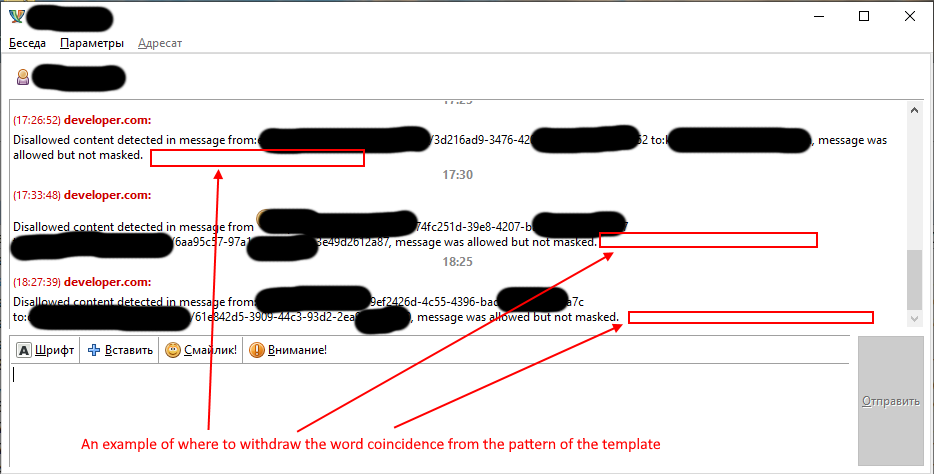 Add the output of the found word from the template pattern in the message to the administrator. See the screenshot for an example.