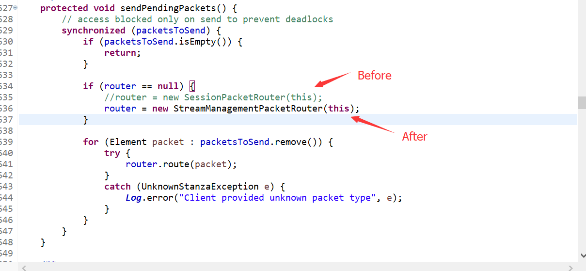 I tried StreamManager.java line 124 enable( element.getNamespace().getStringValue(), resume );