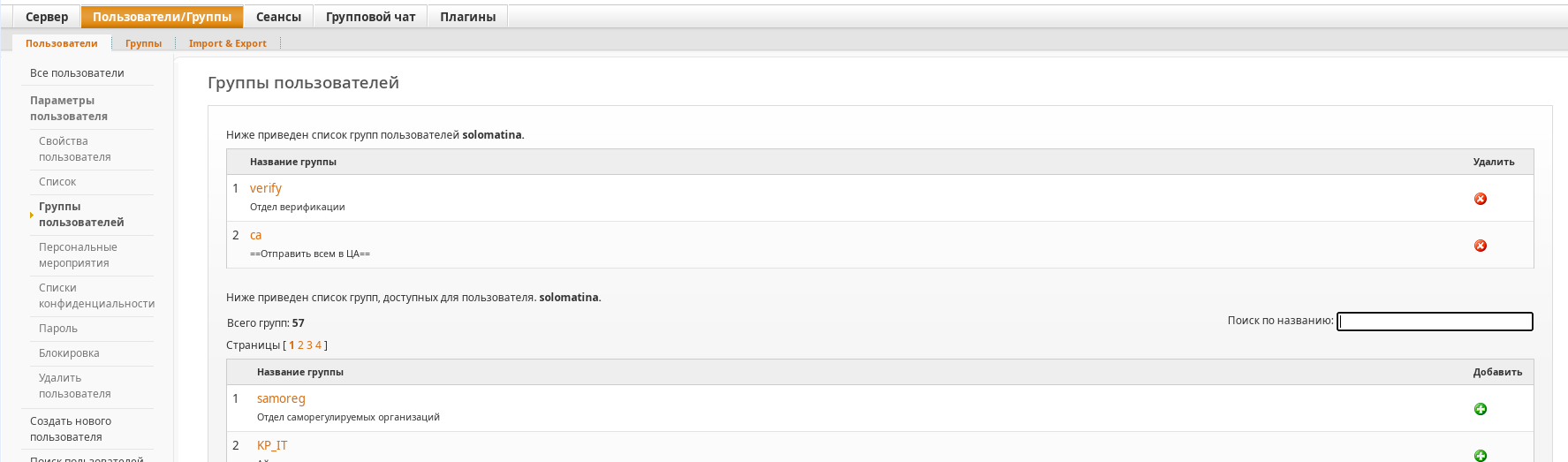 I conducted a forced experiment. A new clean server running on the latest version of ubuntu. The latest version of Openfire. I created a couple of groups, created a user, and added him to the groups during creation. When deleting a group from the user’s card, the bug is the same again as on my video, completely repeating it.