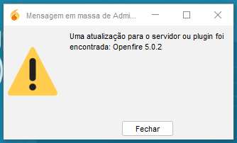 Tem alguma aba no servidor do openfire para não aparecer mensagem de atualização de servidor?